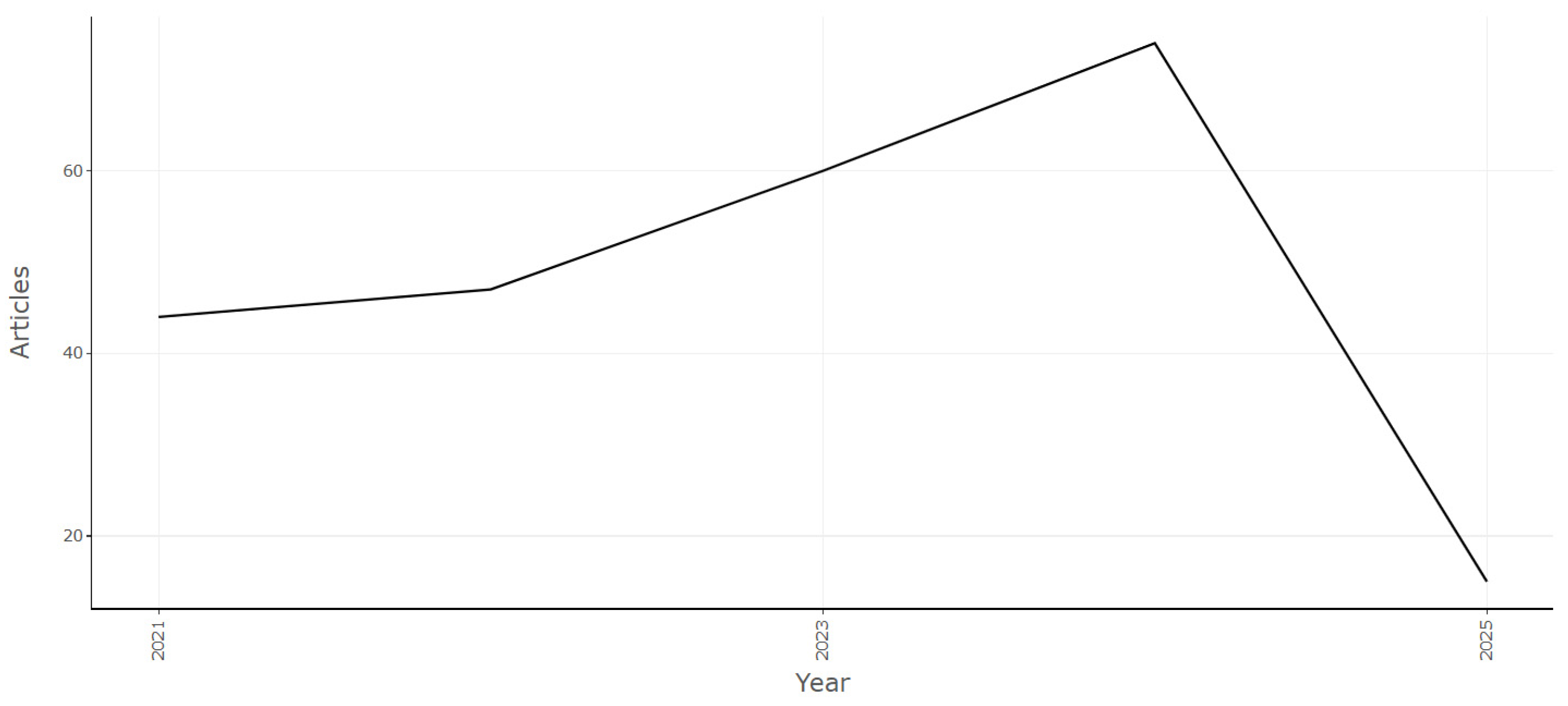 Bibliometric analysis is a quantitative methodology that allows scientific output in a given area of knowledge to be examined. Through techniques such as publication counting, keyword co-occurrence analysis, and citation networks, research patterns, key contributors, evolving interest in a topic, and emerging trends can be identified (