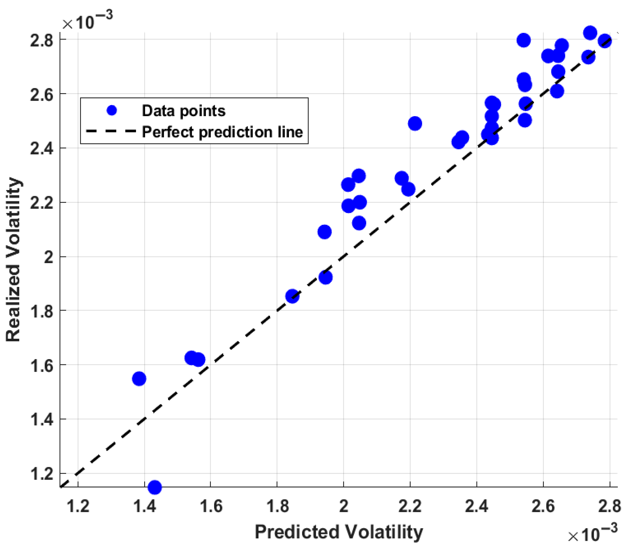 Scatter Plot Analysis of Predicted vs. Realized Volatility of Green Assets