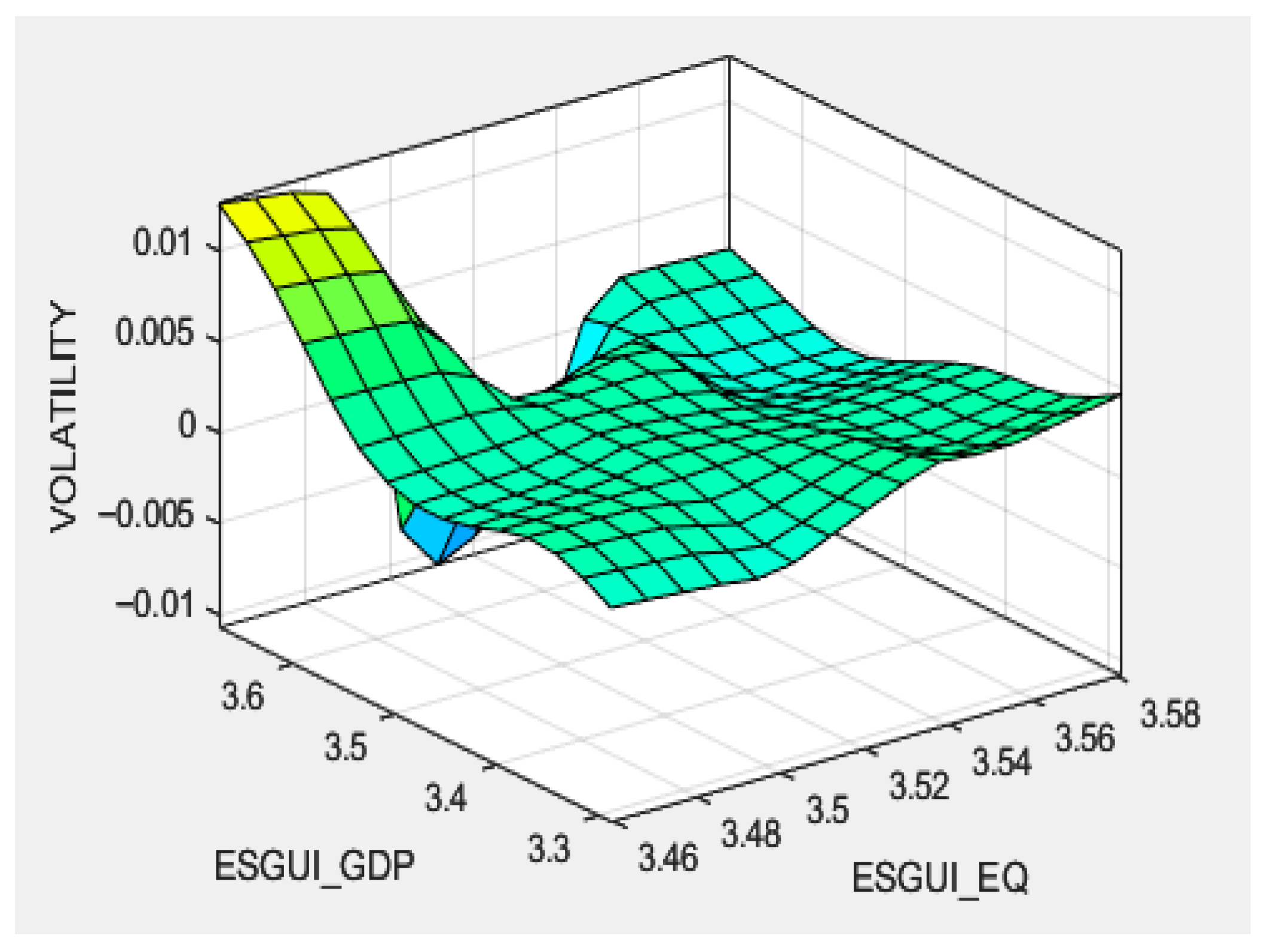 Three-Dimensional Surface Analysis of Predicted Volatility Based on ESGUI_EQ and ESGUI_GDP