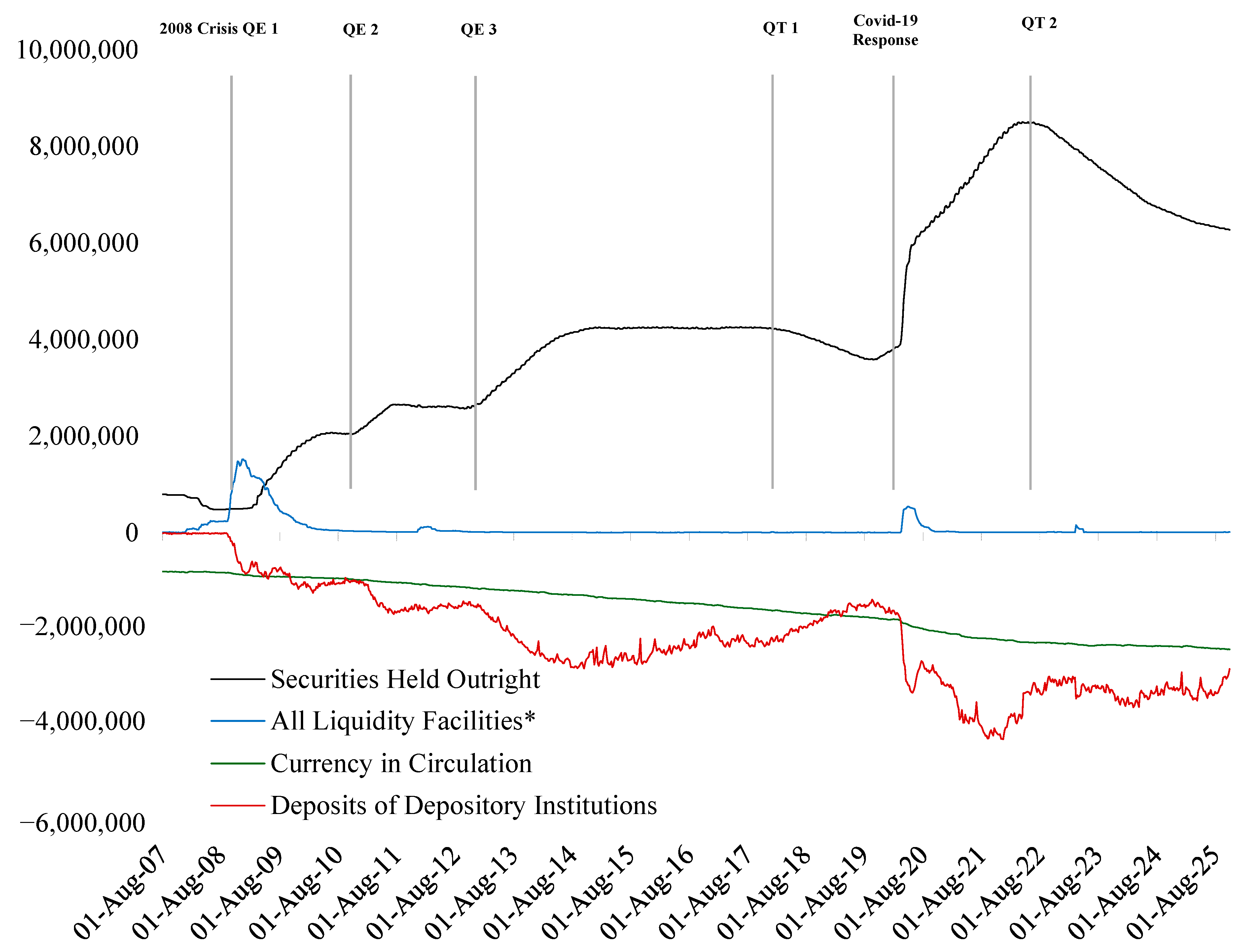 - FED. (2025a). Balance sheet trends—Accessible. US Federal Reserve. Available online: https://www.federalreserve.gov/monetarypolicy/bst_recenttrends_accessible.htm (accessed on 1 November 2025).