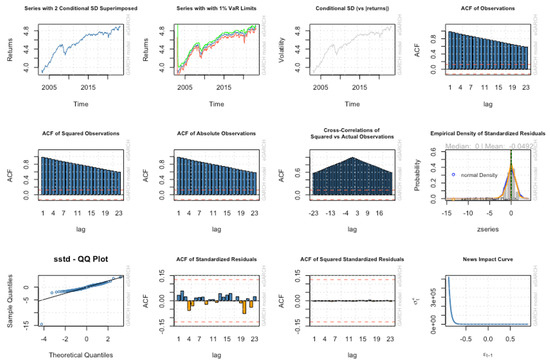 - Nelson, D. B. (1991). Conditional heteroskedasticity in asset returns: A new approach. Econometrica, 59(2), 347–370. [Google Scholar] [CrossRef]