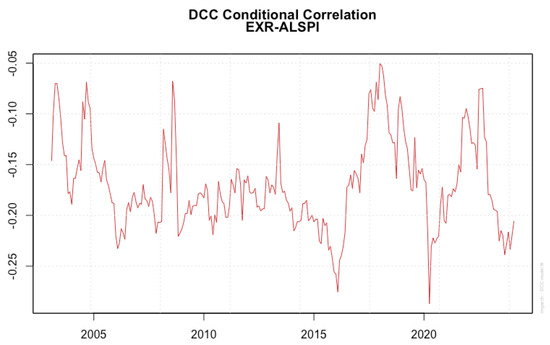The univariate GARCH-type models are estimated separately for each financial series to capture the volatility dynamics of stock returns, exchange rate changes, and interest rate movements. At this stage, no variable is treated as an explanatory variable for another; rather, the models focus on the conditional variance behaviour of each series individually. Cross-market interactions are subsequently analysed through the Dynamic Conditional Correlation (DCC) framework, which captures time-varying dependence among standardised shocks across markets.