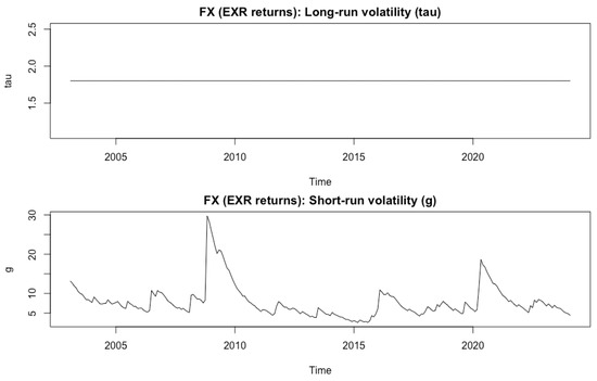 where: is the long-run (low-frequency) volatility component, and is the the short-run (high-frequency) volatility component.