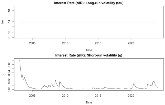 The GARCH–MIDAS–DCC framework offers a flexible approach for modelling financial market volatility by separating persistent long-run volatility dynamics from short-run fluctuations. In this framework, the long-run component captures slowly evolving volatility associated with broader macro-financial conditions, while the short-run GARCH component reflects transitory market shocks and volatility clustering. This decomposition helps ensure that persistent volatility trends, particularly those observed in emerging-market exchange rate and interest rate series, are not mechanically interpreted as persistent cross-market correlations in the DCC stage. By filtering the marginal volatility dynamics prior to estimating dynamic correlations, the framework provides a clearer representation of evolving dependence structures across financial markets. Accordingly, the GARCH–MIDAS–DCC model serves as the primary empirical framework of the study. For robustness and comparability with the existing South African literature, additional asymmetric volatility specifications—EGARCH, GJR-GARCH, and ADCC-GARCH—are also estimated as benchmark models.