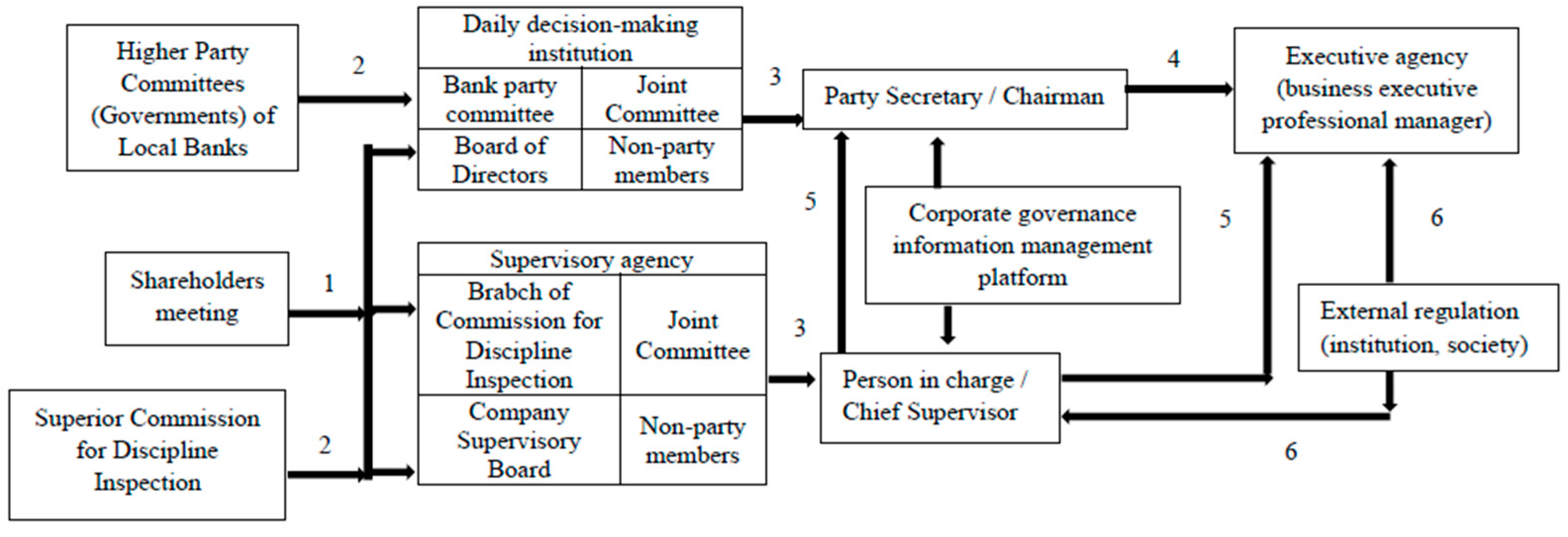 Against this background, it is institutionally feasible to construct a governance model in which the party organization functions as a central coordinating axis, while remaining structurally integrated with the SBSS framework. Such an arrangement does not negate the role of the board of directors or supervisory mechanisms but seeks to enhance governance coherence by addressing coordination failures, fragmented accountability, and weakened oversight capacity. From an international governance perspective, the concentration of the roles of party secretary and board chairman may appear inconsistent with conventional models of board independence. However, governance effectiveness in state-dominated banking systems depends not only on board structure but also on the broader supervisory framework. In the Chinese banking context, regulatory oversight, disciplinary inspection mechanisms, and external auditing institutions provide additional layers of monitoring that function as institutional checks and balances on executive authority. Importantly, this integration is designed to complement, rather than replace, existing governance structures.