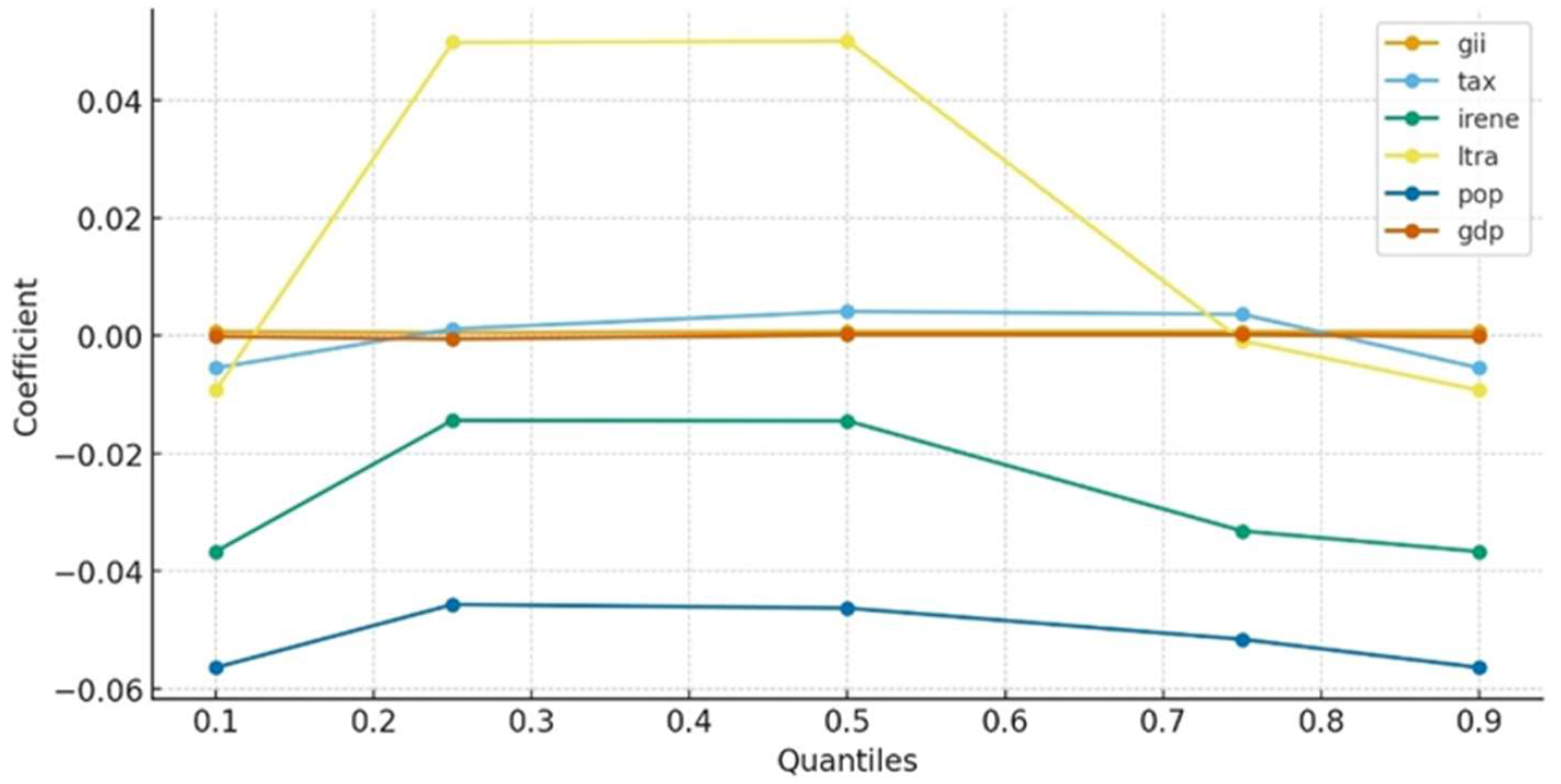 | Dependent Variable (RI) Resilience Index | Q10 | Q25 | Q50 | Q75 | Q90 |