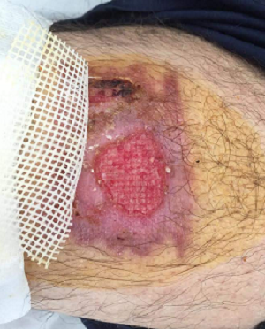 An STSG was prepared and applied to the patients. These grafts are skin grafts from which the epidermis and a portion of the dermis are taken. These grafts can be applied quickly and easily in the closure of skin defects. In addition, STSGs are the most commonly used types of graft for the closure of wider defects [