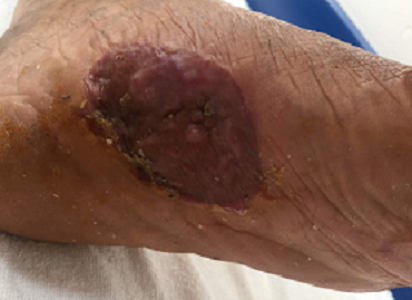 Image showing poor recovery of a graft in the plantar side of the diabetic foot ulcer.