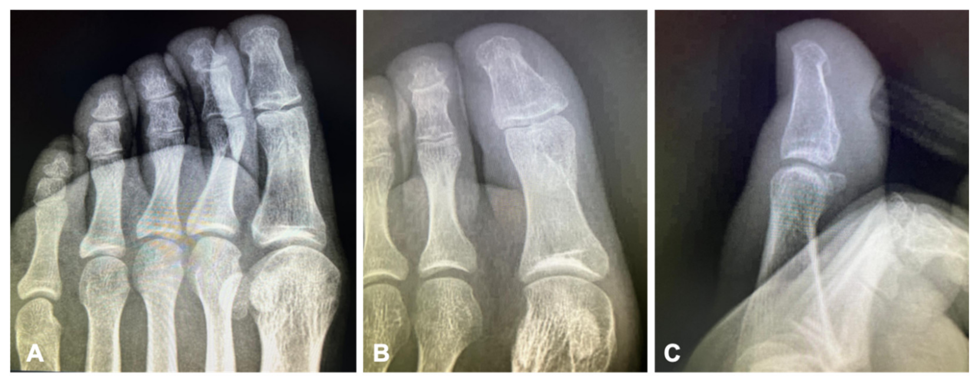 3]. Failure to address hallux fractures promptly can result in valgus deformities, loss of joint range of motion, and early arthrosis of the interphalangeal joint [