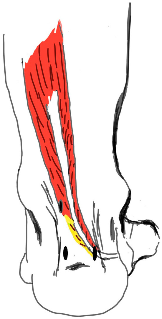 - Boszczyk, A.M.; Kordasiewicz, B. Flexor Hallucis Longus Transfer for Foot Drop without Functioning Tibialis Posterior. Přenos šlachy m. flexor hallucis longus u peroneální parézy bez využití m. tibialis posterior. Acta Chir. Orthop. Traumatol. Cech. 2017, 84, 466–468. [Google Scholar] [CrossRef] [PubMed]