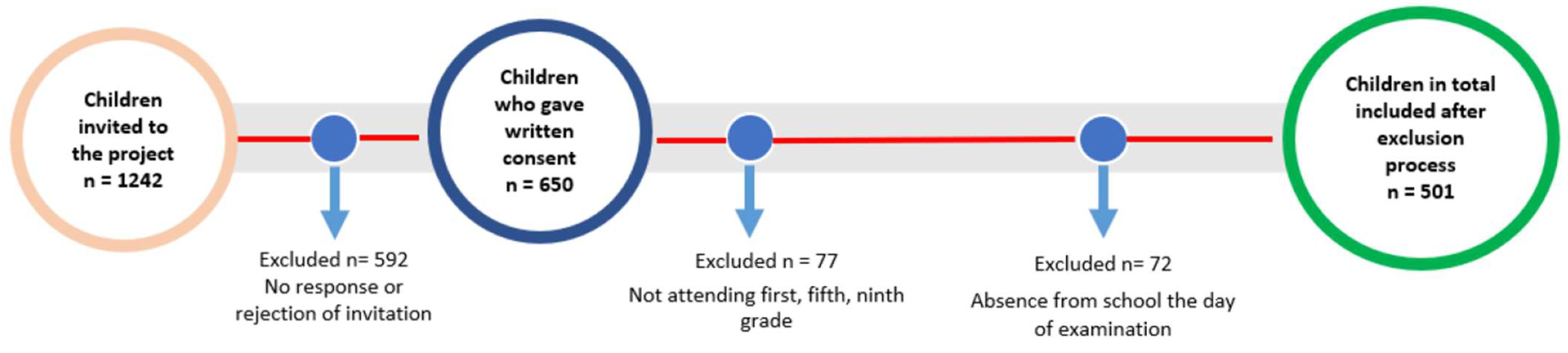 | Age (mean ± SD [years]) | 501 | 7.62 ± 0.43 | 11.62 ± 0.42 | 15.54 ± 0.39 |