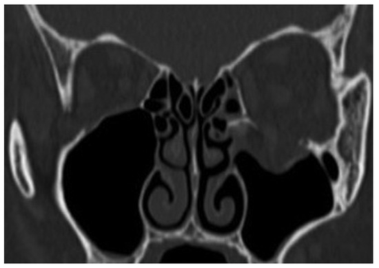 Figure 3. Coronal view of CT before surgery. Entrapment of inferior rectus muscle.