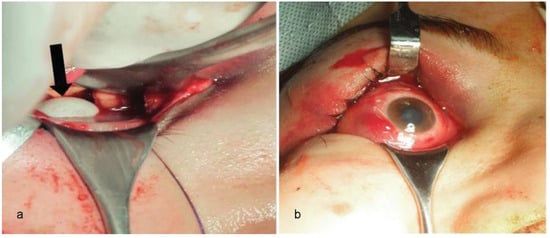 - Kreiner, B.; Amer, R.; Sharfi, G.; Solomon, A.; Ilsar, M. Traumatic displacement of the globe into the paranasal sinuses: Case report and guidelines for treatment. J. Oral. Maxillofac. Surg. 2008, 66, 826–830. [Google Scholar] [CrossRef]