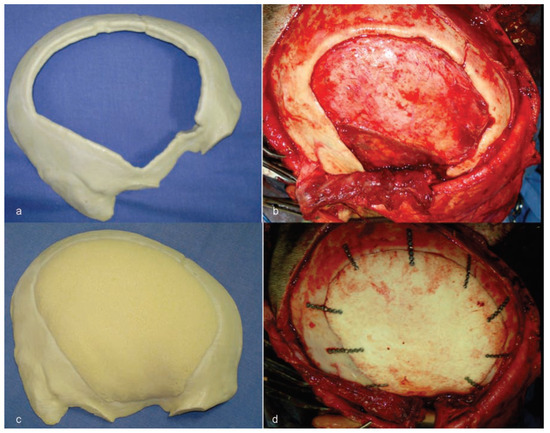 The literature presents several options of polymers for the reconstruction of cranial defects, which present desirable characteristics for reconstructions such as the following: (1) they have suitable resistance for the reconstruction of extensive total defects; (2) they are radiolucent but not ferromagnetic, allowing postoperative control with CT scans and nuclear magnetic resonance imaging (NMRI)/MRI. On the other hand, the polymers can be related to postoperative infections [10].