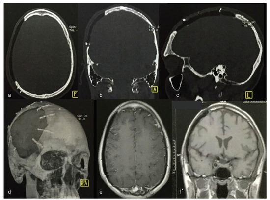 - Manson, P.N.; Crawley, W.A.; Hoopes, J.E. Frontal cranioplasty: Risk factors and choice of cranial vault reconstructive material. Plast Reconstr Surg 1986, 77, 888–904. [Google Scholar] [CrossRef] [PubMed]