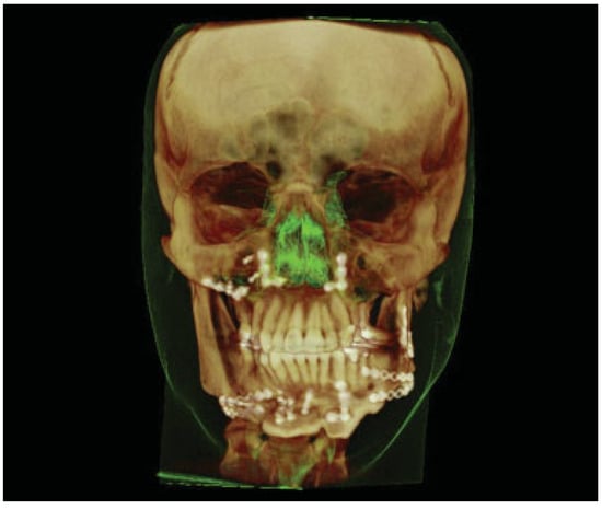 Postoperative 3D cone beam computed tomographic scan, frontal view after 2 years.