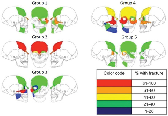 - Bellamy, J.L.; Mundinger, G.S.; Flores, J.M.; et al. Facial fractures of the upper craniofacial skeleton predict mortality and occult intracranial injury after blunt trauma: an analysis. J Craniofac Surg 2013, 24, 1922–1926. [Google Scholar] [CrossRef] [PubMed]