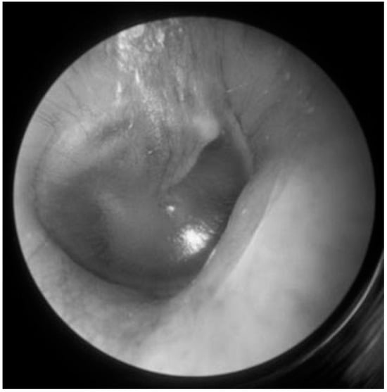 The otoendoscopic finding revealed a normal right tympanic membrane.