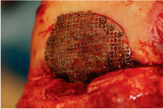 - Cavalieri-Pereira, L.; Assis, A.; Olate, S.; Asprino, L.; de Moraes, M. Surgical treatment of frontal sinus fracture sequelae with methyl methacrylate prosthesis. Int J Burns Trauma 2013, 3, 225–231. [Google Scholar] [PubMed]