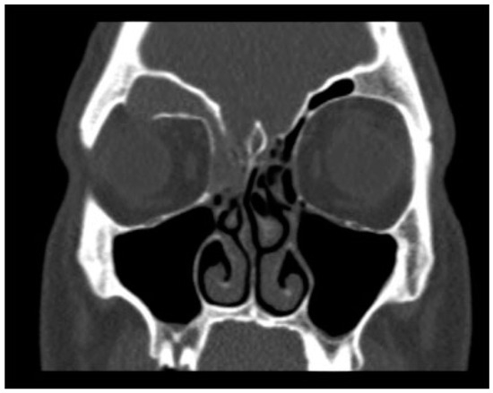 - Jafari, A.; Nuyen, B.A.; Salinas, C.R.; Smith, A.M.; DeConde, A.S. Spontaneous ventilation of the frontal sinus after fractures involving the frontal recess. Am J Otolaryngol 2015, 36, 837–842. [Google Scholar] [CrossRef] [PubMed]