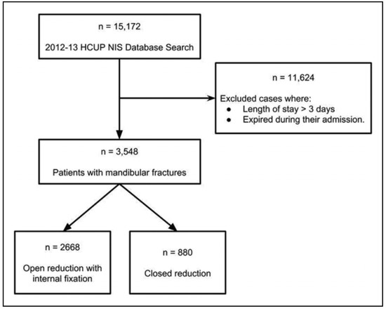 One of the major limitations of this study is the lack of granularity found in large, retrospective studies. These data are only from the 2012 and 2013 NIS due to institutional availability. Mandibular fracture management is a dynamic topic and we were unable to evaluate whether these trends hold true over a longer time period. Future studies can be performed to evaluate these trends. In addition, the study was designed to attempt exclusion of polytrauma patients and patients with an extended hospital course, so that only simple mandibular fractures comprised the study cohort. However, by doing so, our data focus on less severe trauma, possibly affecting the ratio of open reduction versus CR. Therefore, our data only generalize to patients well enough to leave the hospital in 3 days.