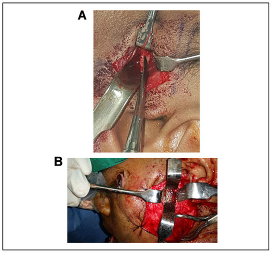 - Güerrissi, J.O. A transparotid transcutaneous approach for internal rigid fixation in condylar fractures. J Craniofac Surg. 2002, 13, 568–571. [Google Scholar] [PubMed]