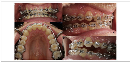 Cephalometric analysis revealed skeletal class III with a retrognathic maxilla and orthodontic mandible, a decreased anterior lower face height with a closing growth direction. The patient had slightly upright anterior teeth and labially inclined lower incisors (Table 1 and Figure 2B). The presurgical orthodontic treatment with conventional fixed appliances (Mini-Mat Roth, Ormco) was completed in 2 years and followed by orthognathic surgery (Figure 3).