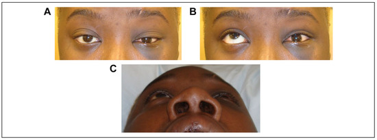 - Ethunandan, M.; Evans, B.T. Linear trapdoor or “white-eye” blowout fracture of the orbit: Not restricted to children. Br J Oral Maxillofac Surg. 2011, 49, 142–147. [Google Scholar] [PubMed]