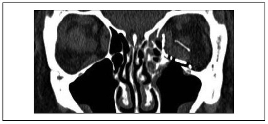 - Merville, L.C.; Gitton, E. An unusual form of isolated fracture of the orbital floor: “valve fracture”. Therepeutic Problems. Rev Stomatol Chir Maxillofac. 1985, 86, 165–170. [Google Scholar] [PubMed]