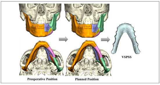 VSP used for preoperative planning and virtual reduction of fractured segments to planned position, then the VSPSS was designed and prepared for fabrication. VSP indicates virtual surgical planning; VSPSS, virtual surgical planning for surgical splint.