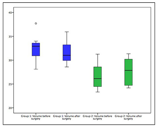 - Orbital Volume: Pre- and postoperative orbital CT volumes were measured (iPlan CMF 3.0.5, Brain-Lab).[14] The preoperative volume of the affected exe was compared to the volume of the unaffected side and to the postoperative volume. Analysis was performed by the primary surgeon (M.R.) to assure intra-observer repeatability. To calculate volumes, the orbital cavities were segmented automatically and in case of remaining defects or reduction of the orbital cavity due to titanium meshes, extensive scaring, bone fragments, and so on were manually adjusted using the smart shaper tool.
