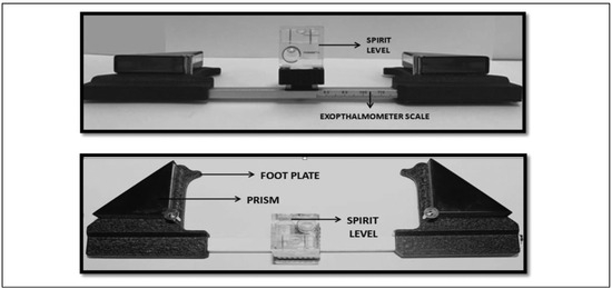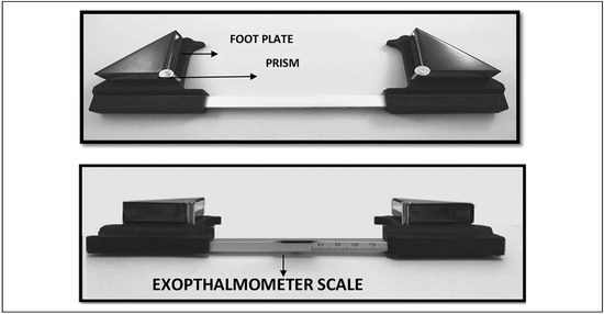 Figure 1) may vary if too much pressure was applied on the orbital rims while seating of the footplates, parallax errors may arise, the instrument relied on intact orbital rims for its placement and rotation of the instrument can occur at the horizontal axis.[