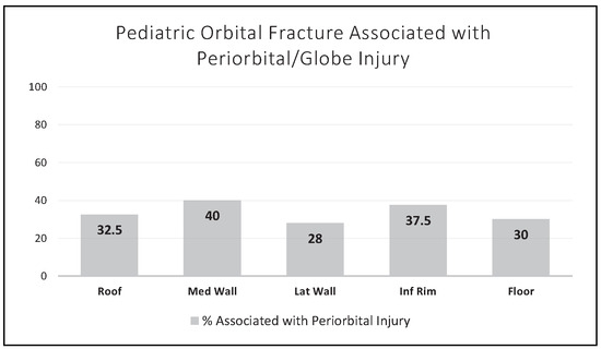While there are excellent studies discussing orbital fractures in the pediatric patient, there is a dearth of studies discussing the characteristics and clinical presentation of associated periorbital and globe injuries. The aim of this study is to examine the incidence and management of periorbital and globe injuries at our institution to gain a better understanding of how to approach pediatric patients with orbital fractures.