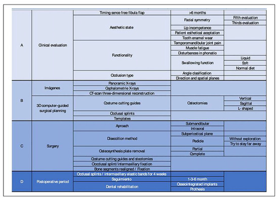 At present, there is limited information in the medical literature about this subject and about its short-term and long-term outcomes following postoperative concerning to the occlusion after primary mandibular reconstruction and the malocclusion management with orthognathic surgery in these cases where this complication is present.