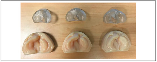 More recent studies have investigated the integration of graphical user interfaces with CAD-CAM technology to automate the design of several intraoral molding plates from a single impression taking. For example, Bauer et al. reported in 2017 the RapidNAM system, which utilizes a “growth prediction factor” to project the patient’s cleft growth and generate a series of molding plates based on these projections. [60] In their study, the computer-generated algorithm generated plates that were able to reduce the cleft gap by nearly 50%. The NAM appliances are produced with a PolyJet 3D printer using a biocompatible resin. Three appliances were utilized for the entire treatment course. The study authors note that no cases of mucosal ulcerations or skin irritation were found and that the NAM appliances significantly increased ease of use and cut costs for the patients’ families. An example of digitally produced sequential study models and molding plates is shown in Figure 2.