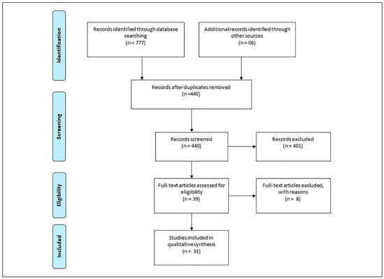 - Moher, D.; Liberati, A.; Tetzlaff, J.; Altman, D.G.; PRISMA Group. Preferred reporting items for systematic reviews and meta-analyses: the PRISMA statement. PLoS Med. 2009, 6, e1000097. [Google Scholar]