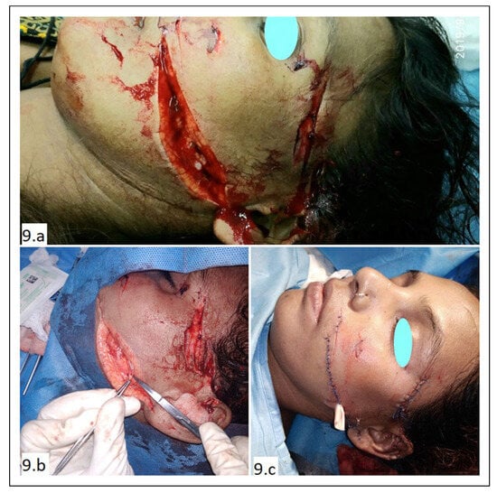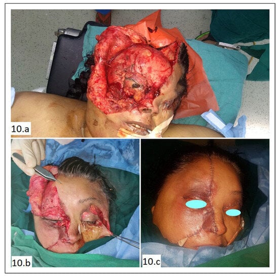 - Wound infection: She developed cellulitis and an abscess under the reposited flap on post-operative day 2 (Figure 10C, D). It was treated by re-exploration and abscess drainage with copious irrigation. Culture yielded polymicrobial infection. Antibiotics were started according to sensitivity report.