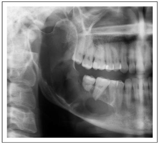 OPG of a patient 5 with a right mandibular ameloblastoma.