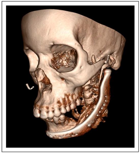 - Taristano, A.; Battaglia, S.; Ramieri, V. , et al. Short-term outcomes of mandibular reconstruction in oncological patients using a CAD/CAM prosthesis including a condyle supporting a fibular free flap. J. Cranio-Maxillo-Fac. Surg. 2017, 45, 330–337. [Google Scholar] [CrossRef]