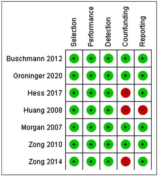 Individualized bias. Green color represents low risk and red color represents high risk of bias.