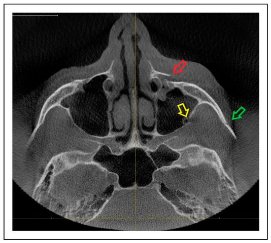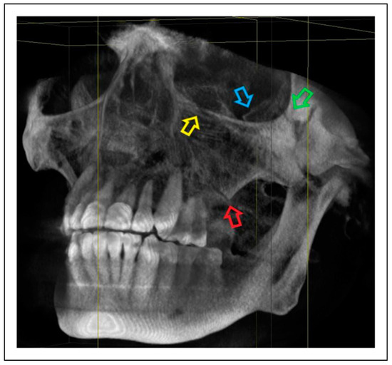 - Raschke, G.F.; Rieger, U.M.; Bader, R.D.; et al. The zygomaticomaxillary complex fracture-an anthropometric appraisal of surgical outcomes. J Cranio-Maxillo-Fac Surg. 2013, 41, 331–337. [Google Scholar] [CrossRef]