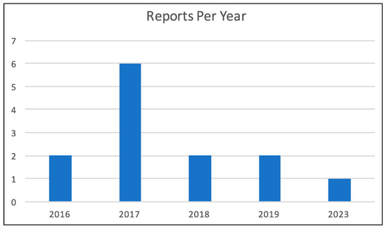 Thirty-four medical device reports were identified from the MAUDE database. Twenty-one of these cases were excluded as they were either duplicates, unrelated adverse events, or events associated with the off-label use of DOC. Of the 13 included cases, there were a total of 21 adverse events reported (see Figure 1 for a breakdown of the cases per year).