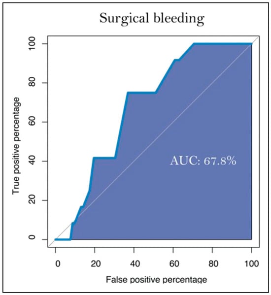 ROC curve describing the surgical bleeding cutoff point of significance.
