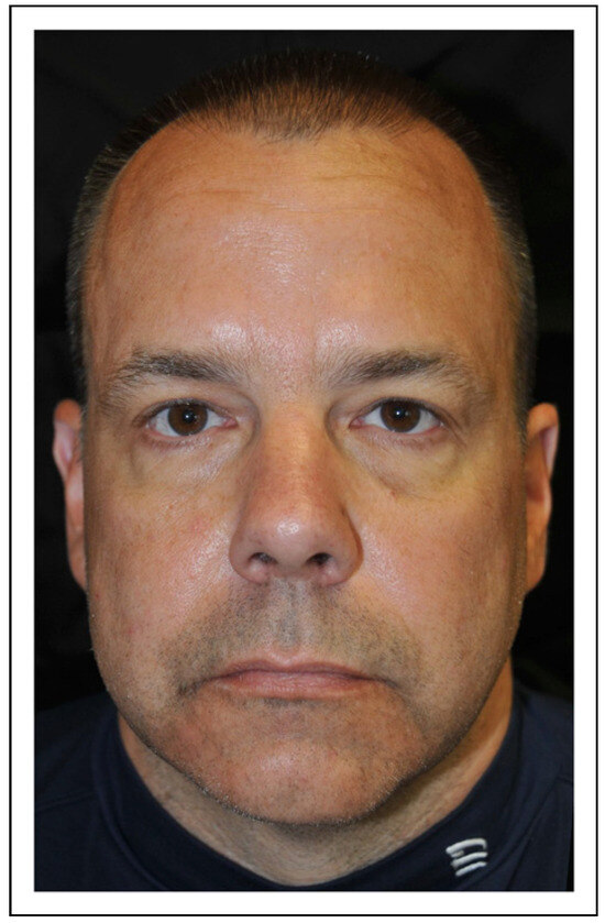 Figure 6 is a photo of a patient who is a pilot who was involved in a plane crash with a significant right orbital floor fracture. He was followed by the senior surgeon with Naugle exophthalmetric measurements for 2 years, and indeed developed 3 mm of enophthalmos on his right side. His CT views of his orbit (Figure 7A,B) demonstrate a significant orbital floor fracture and a significant rounding of the inferior rectus muscle compared to the relatively flat appearance of the contralateral muscle. He never had a surgical correction and never developed diplopia, which would be a significant handicap to him, or any other patient if caused by a post-surgical procedure. His 2-year post-trauma photos were presented at an advanced AOCMF Orbit Course where the participants, with a specific interest in orbital trauma were asked which side the defect was on [32]. The choices offered were the “right side”, the “left side”, or the participant “did not know” the side of the enophthalmos. Eight percent of the participants chose the correct side, 48% chose the wrong side, and 44% did not know. The patient who now is out of state was contacted 14 years post-trauma and he and his family still do not notice a difference between the normal side and the side that sustained his orbital trauma. The critical question that needs to be asked is the following. If a patient has a measurable enophthalmos of ≥3 mm, but has no diplopia, no other symptoms, and most friends and family members do not notice the deficit, are the risks and costs of a surgical correction justified?