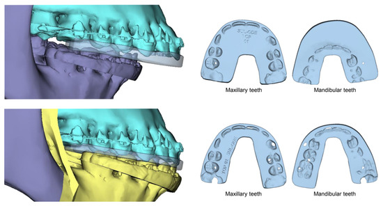 An example of intermediate (top) and final splint (bottom) used for bimaxillary osteotomy (maxillary first surgery case).