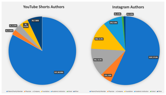The authors of the posts in this study included patients, their parents/caregivers or family members, physicians, companies, hospitals and academic institutions, foundations (example: Operation Smile), schools, and others. The categorization of post authors was primarily determined through a detailed analysis of the post’s content and caption. For example, a posting discussing the pre-operative and post-operative procedure performed by a plastic surgeon would be categorized under physician. In cases with unclear authorship, authorship was determined by reviewing the profile description and other related postings of the user. Typically, examining the profile description and related posts by the user provided sufficient information to clarify the author’s identity.
