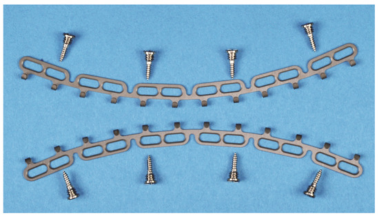 The OmniMax MMF System (Zimmer-Biomet, Jacksonville, FL, USA) is a bone-anchored MMF system and is composed of preformed arch bars (plates) and locking screws based on the same basic principle as other hybrid systems (Figure 3). The market release was in 2016.
