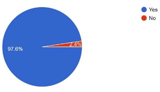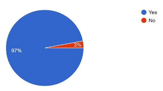 Table 1. A total of 169 responses were received. Responses were automatically recorded within the Google Forms platform and stored in Google Sheets, where its charting features were used to generate question-wise graphs and response percentages.
