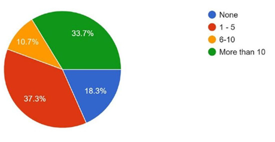 .Regarding publication history, 37.3% reported having fewer than five articles, 33.7% had more than ten publications, 10.7% had between five and ten, and 18.3% had no published articles (