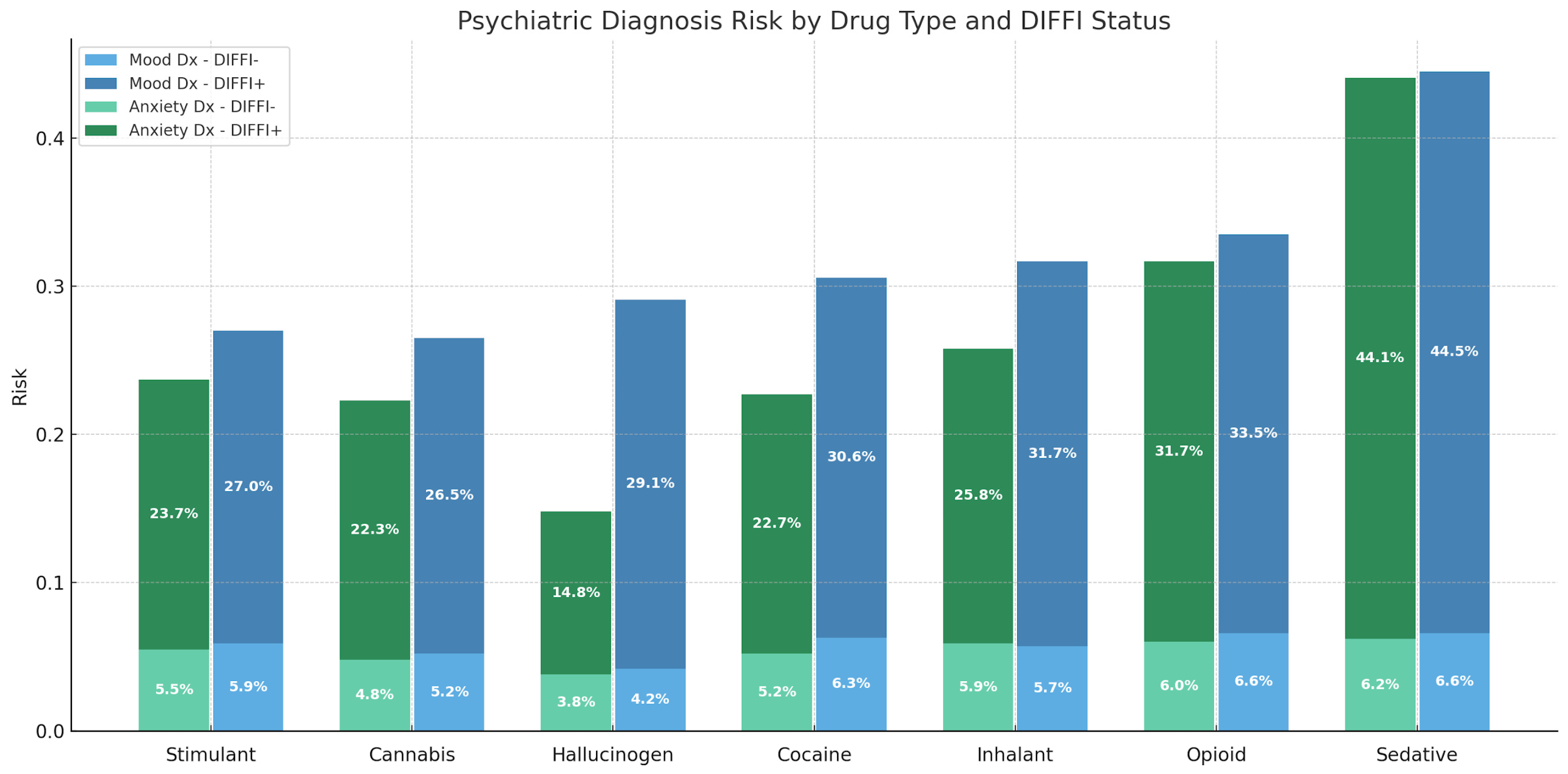 3.4. DIFFI and Psychiatric Diagnosis Risk
